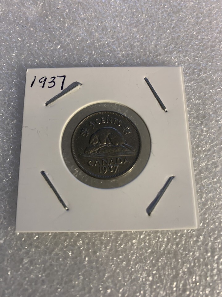 - 1937 Canada 5 Cents Nickel King George V Canadian Coin