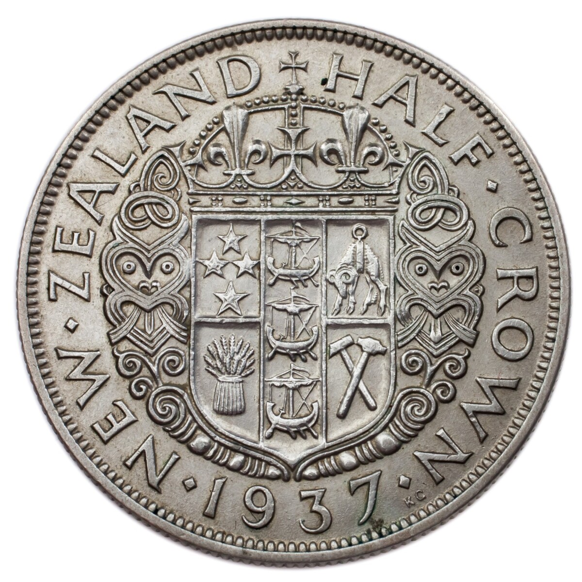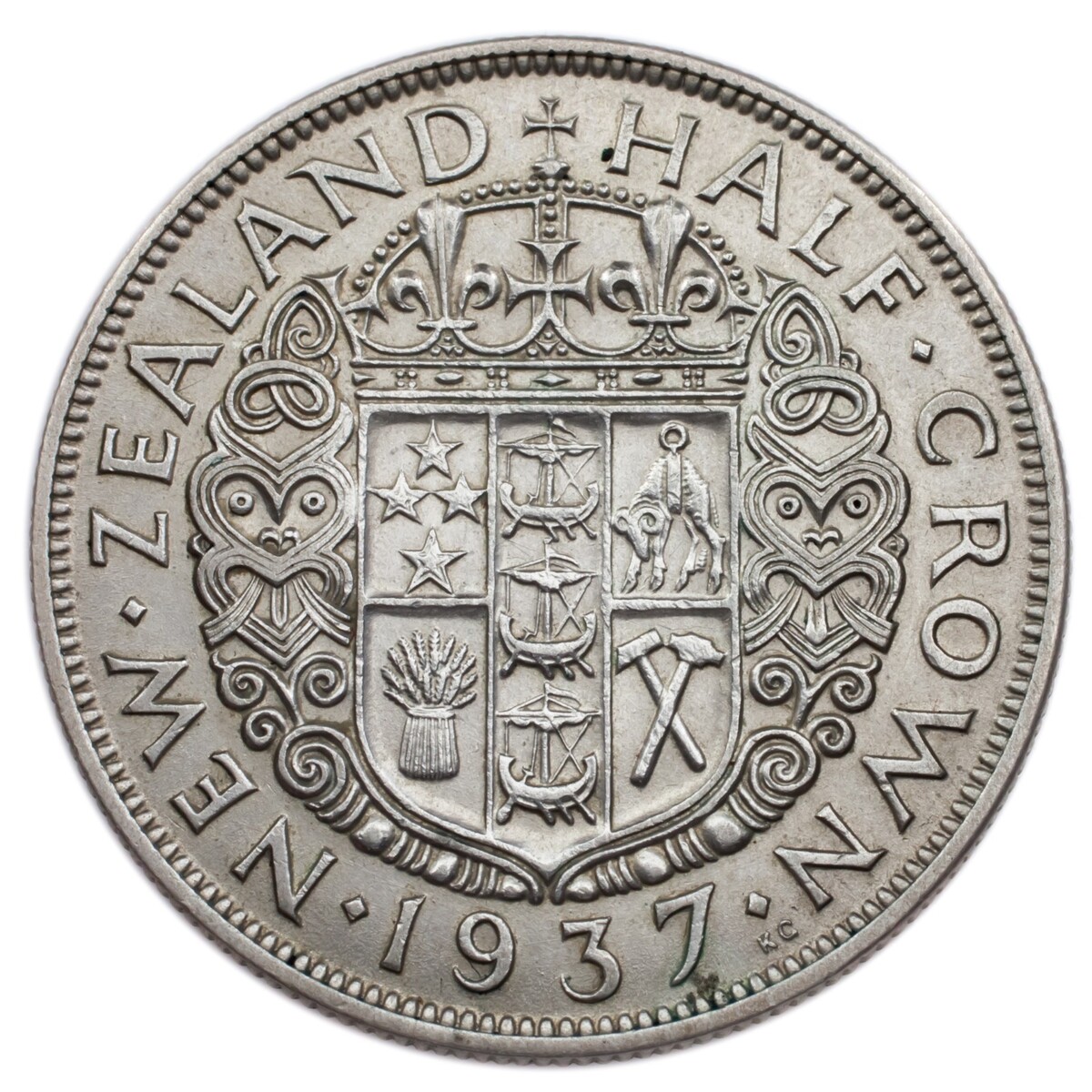 1/2 Corona de Plata de Nueva Zelanda de 1937 en Condicion XF KM# 11