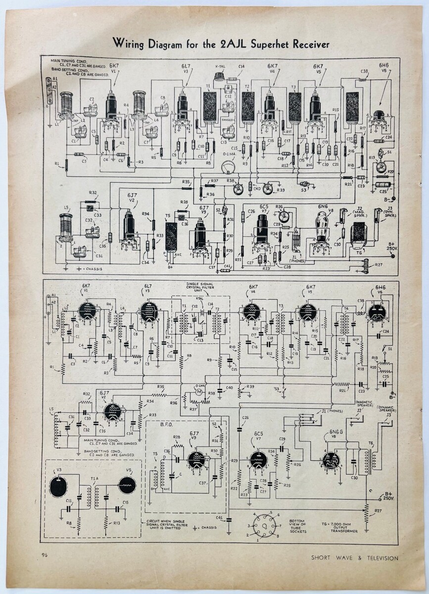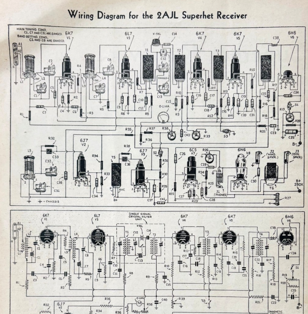 - 1938 2AJL Superhet Receiver Radio Wiring Diagram Vintage Schematics DWW12C