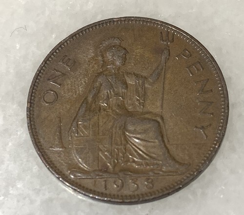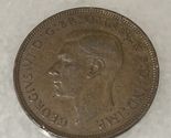 1938 Circulated Great Britain One Penny George VI Bronze World Coin Low Mintage.