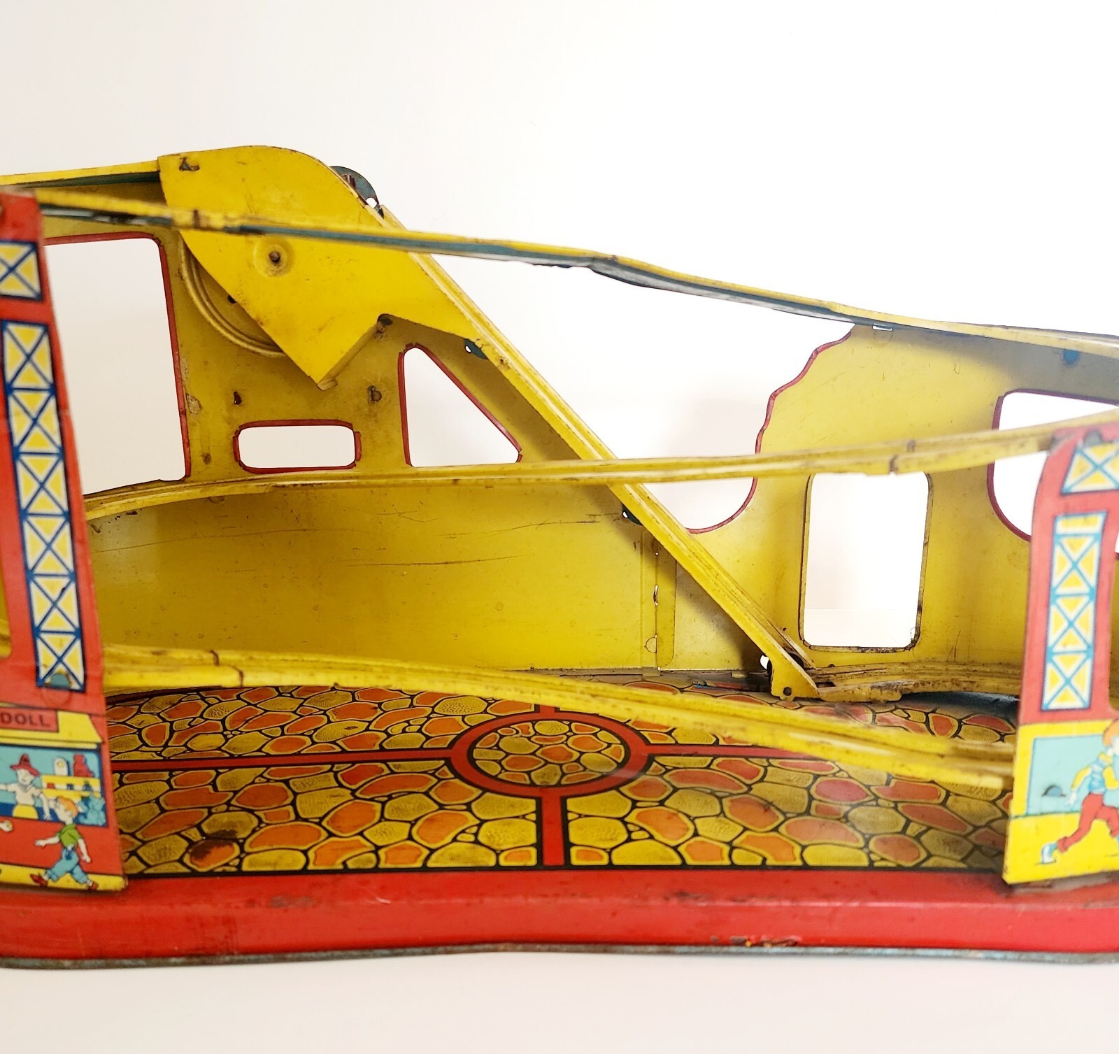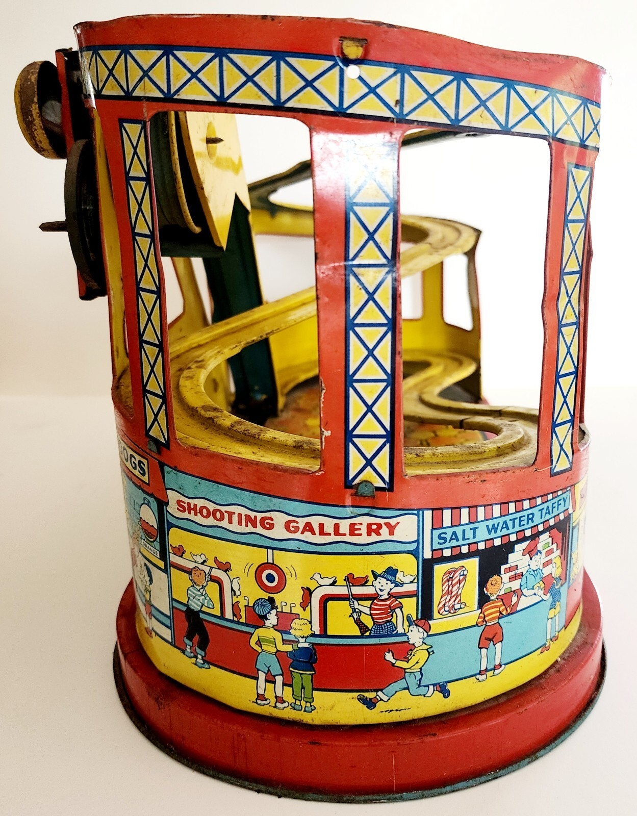 - 1940-50s J. Chein Tin Litho Wind Up Rollercoaster Toy Antique Circus INVRM