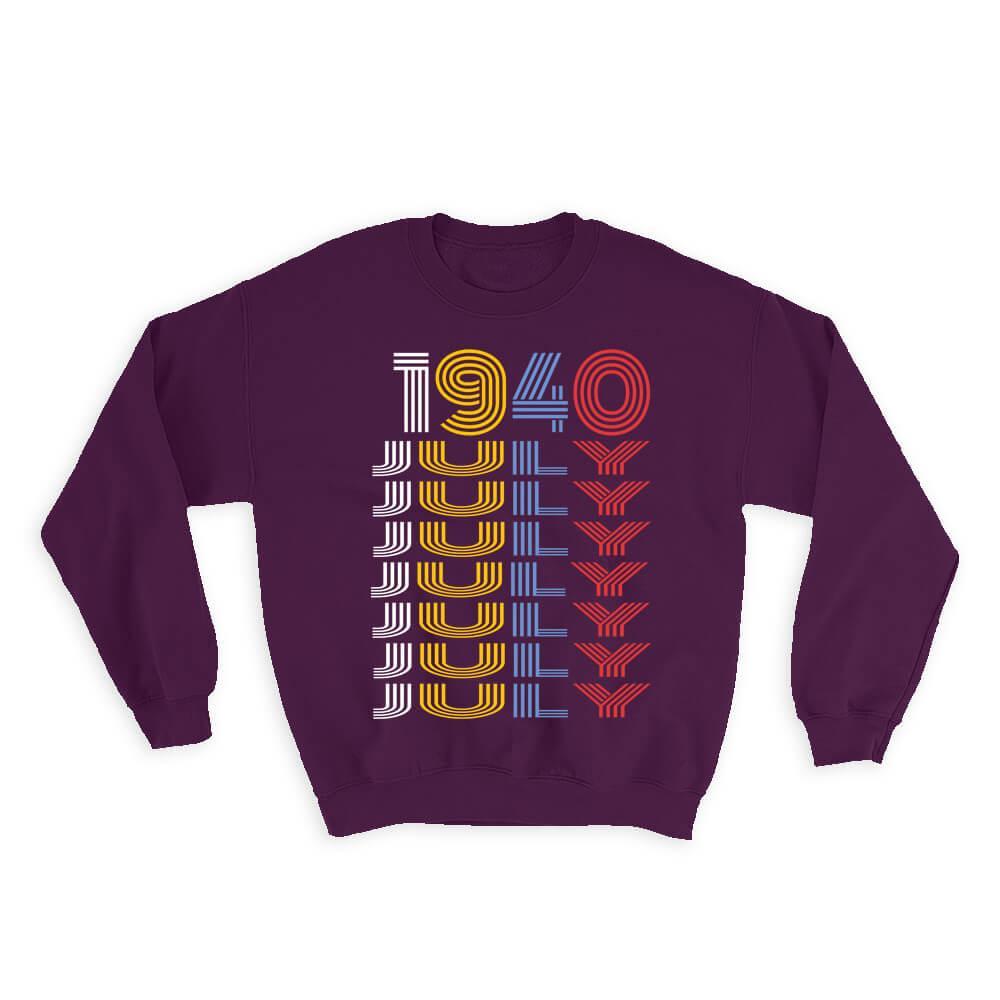 1940 July Colorful Retro Birthday : Gift Sweatshirt Age Month Year Born