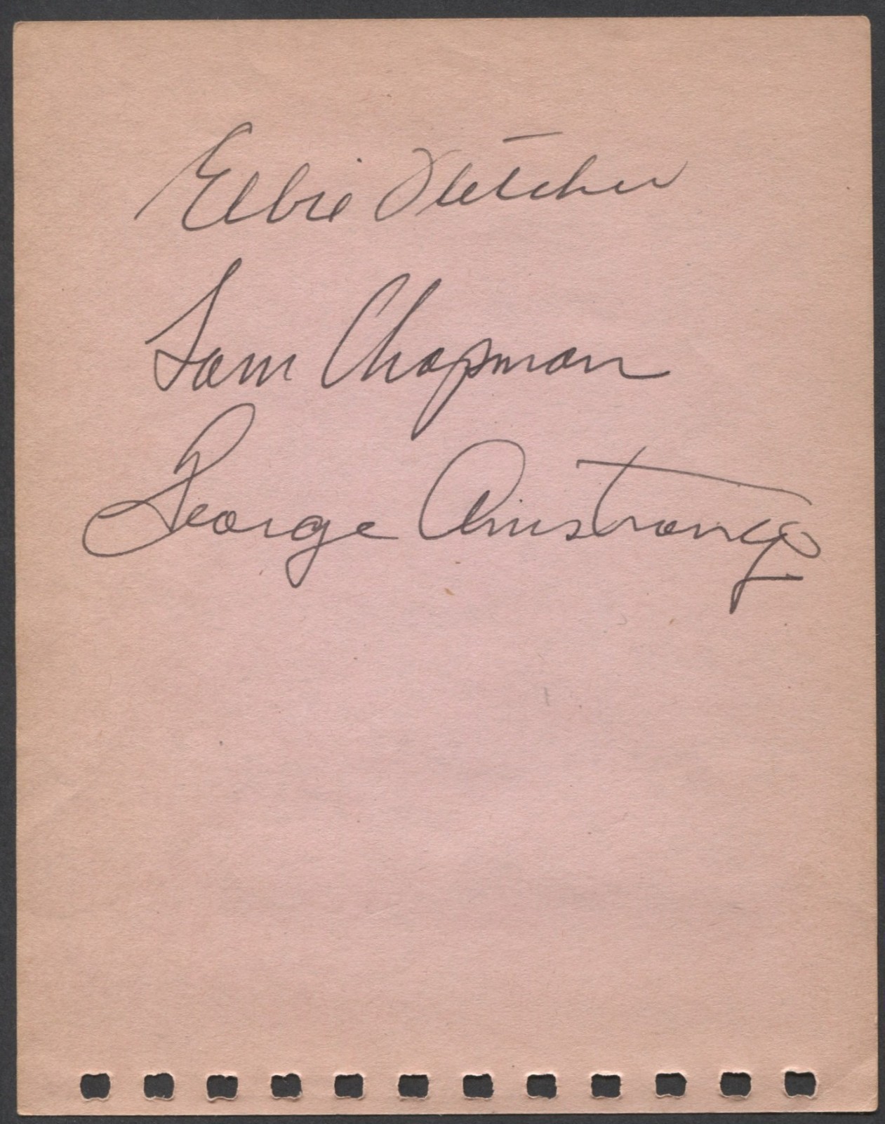 1940'S SIGNED ALBUM PAGE X3 SAM CHAPMAN GEORGE ARMSTRONG ELBIE FLETCHER PHIL A'S