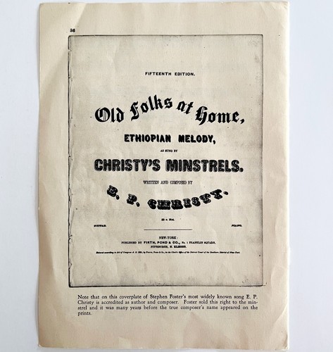 1940 Stephen Foster Ethiopan Melody Print Ephemera Old Folks At Home DWN10A