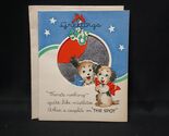 1940s 50s Unused CHRISTMAS CARD & ENVELOPE Puppies Under Mistletoe