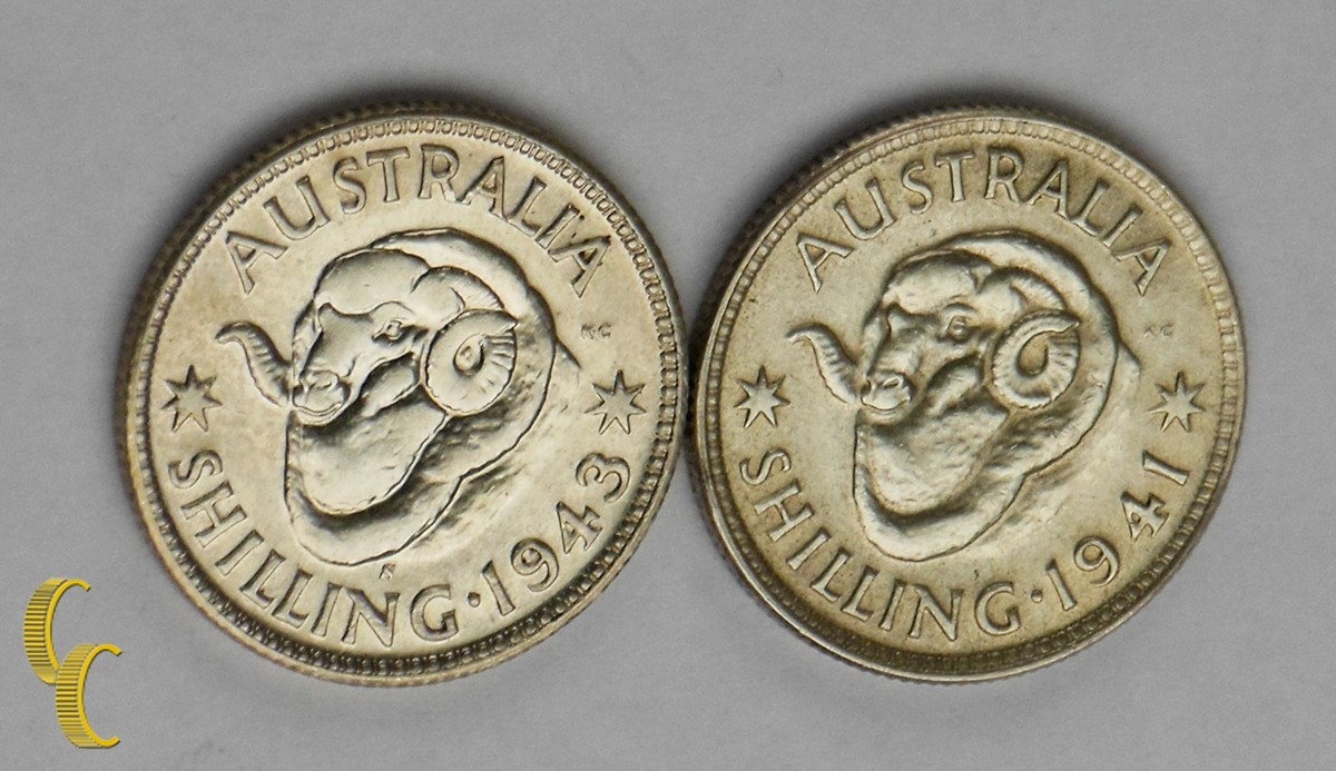 - 1941-43 Australia Shilling Silver Coin Lot of 2 KM# 39