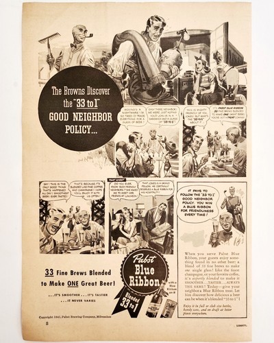 - 1941 Pabst Blue Ribbon Beer 33 To 1 Browns Advertisement Comic Strip DWNN12