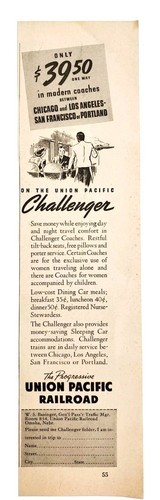 - 1941 Union Pacific Railroad Challenger Advertisement Train Modern Coaches DWNN12