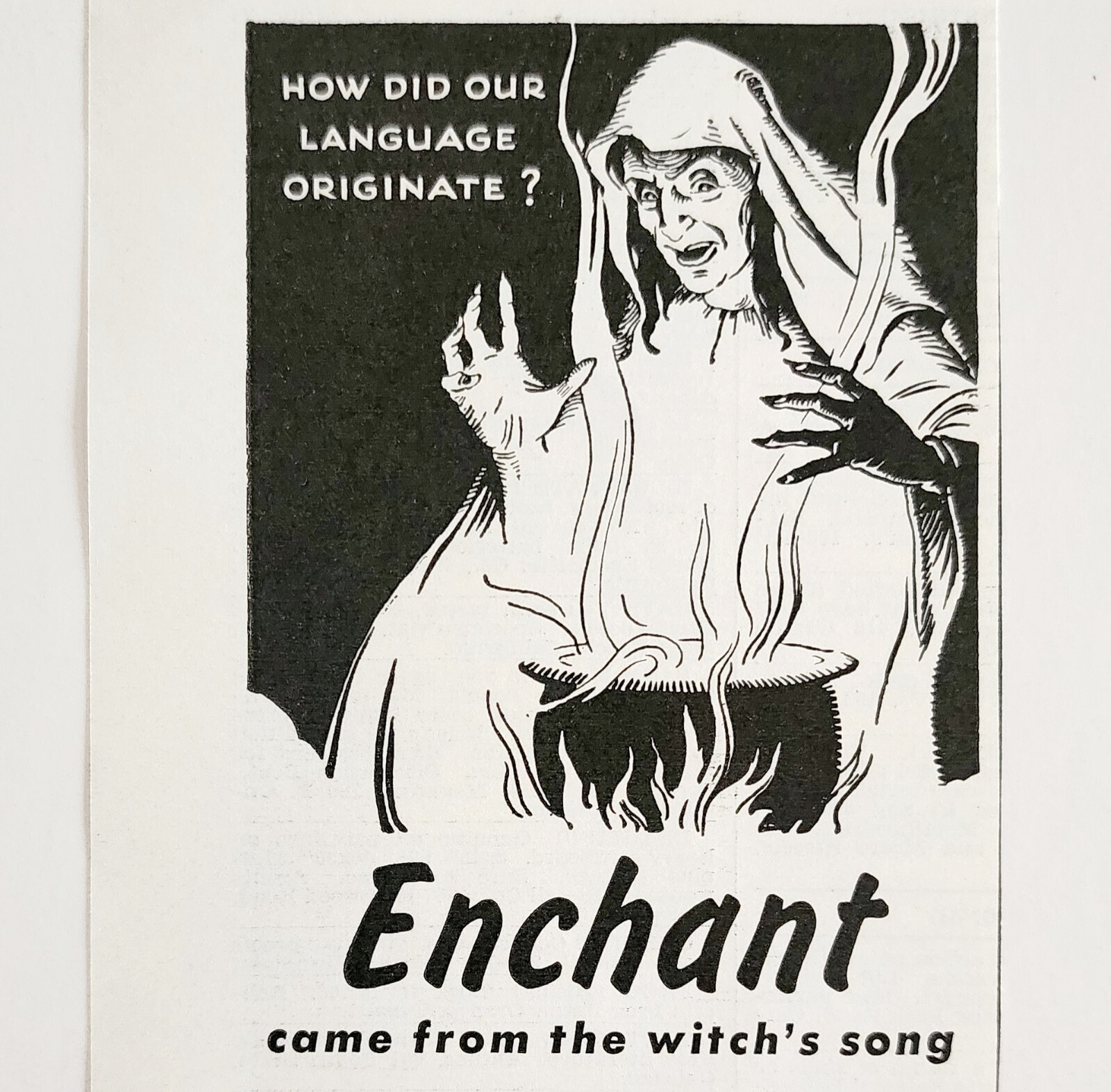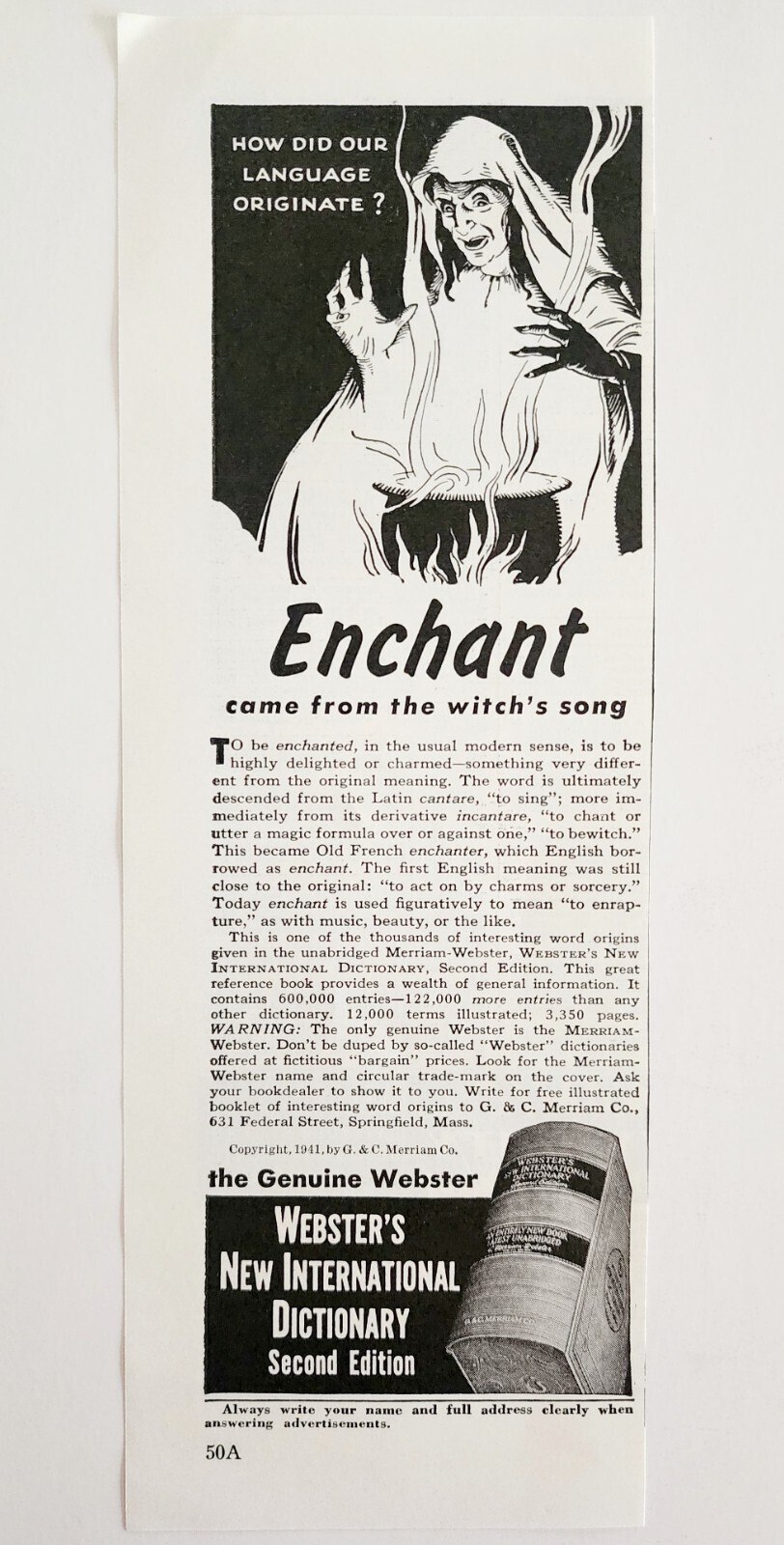- 1941 Webster's Dictionary Advertisement Enchant Witch Word Origin DWF25