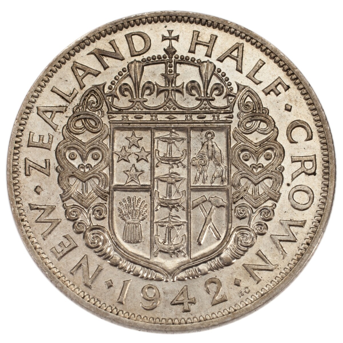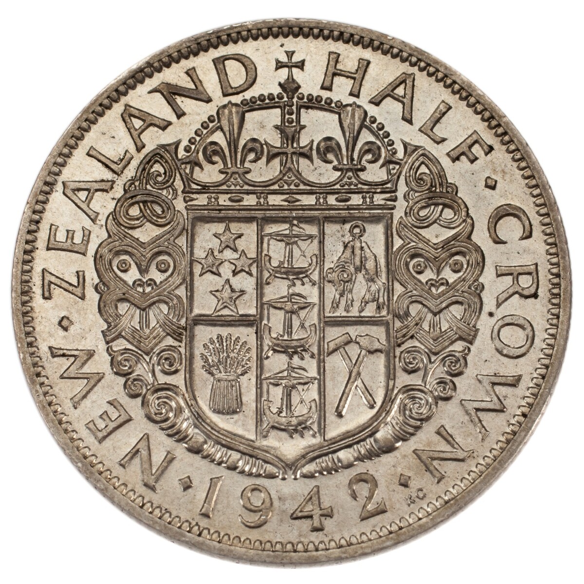 1942 Nueva Zelanda 1/2 Corona KM #11 Condicion XF