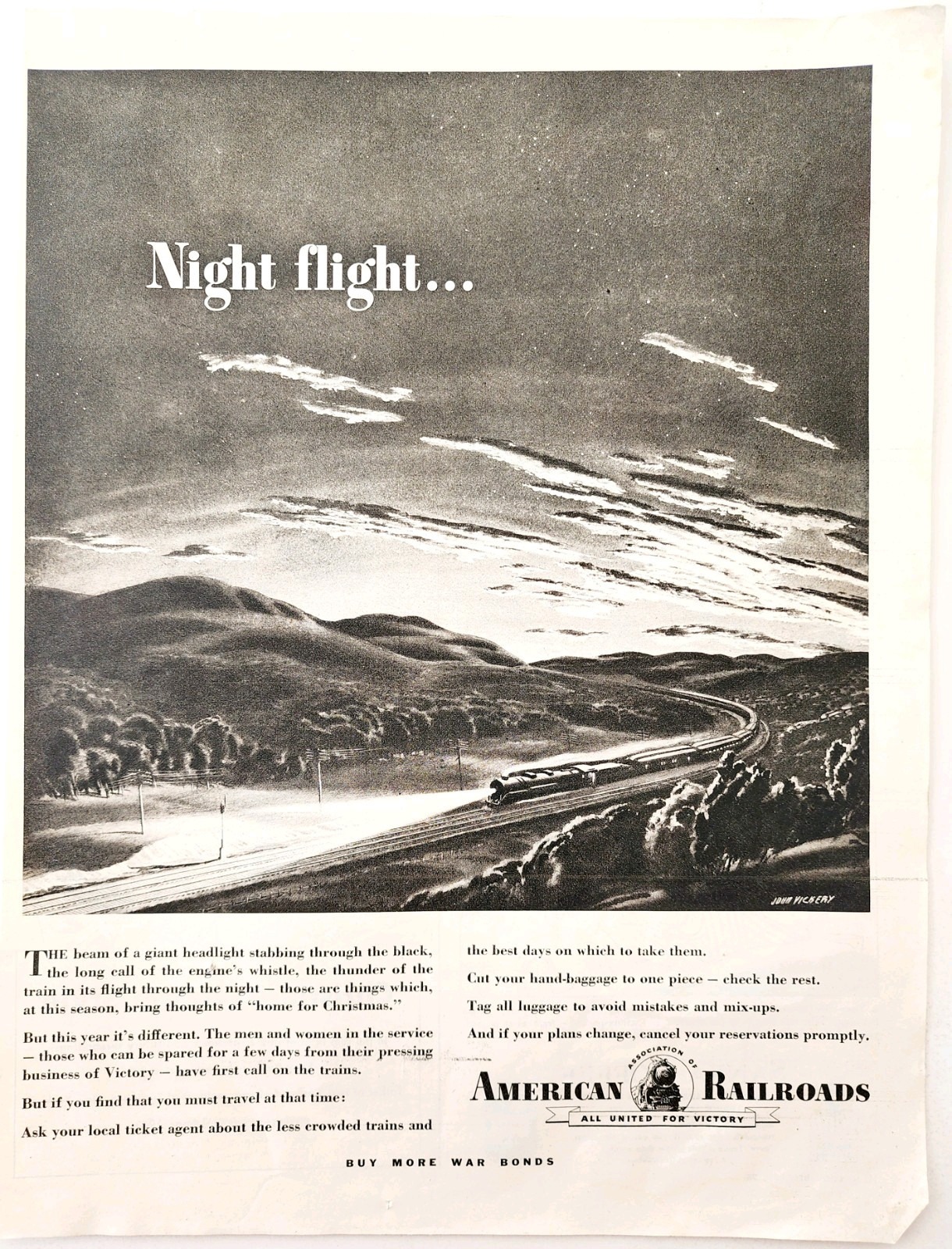 - 1943 American Railroads Night Flight Xmas WW2 Advertisement Railway Train DWII26