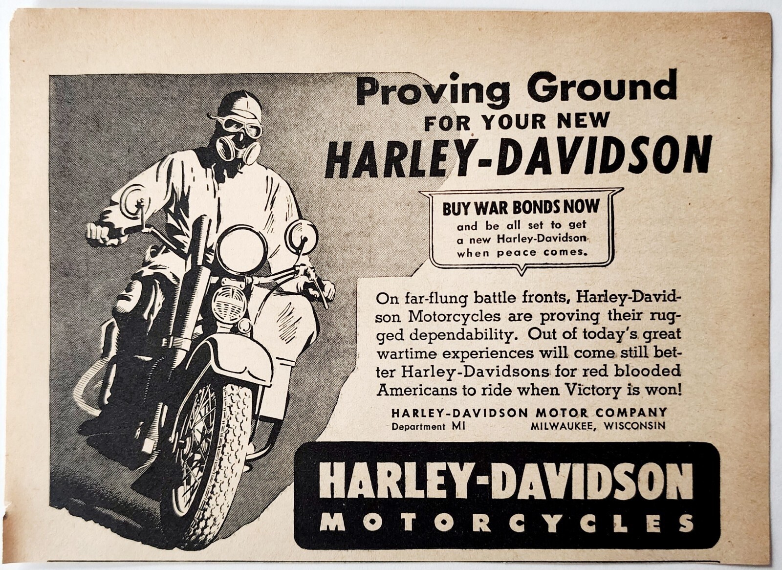 - 1943 Harley Davidson Motorcycle War Bikes Advertisement WW2 Battle Front DWF17