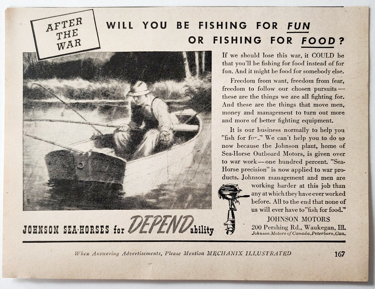- 1943 Johnson Sea-Horse Outboard Engine WW2 Advertisement Post War Fishing DWF17