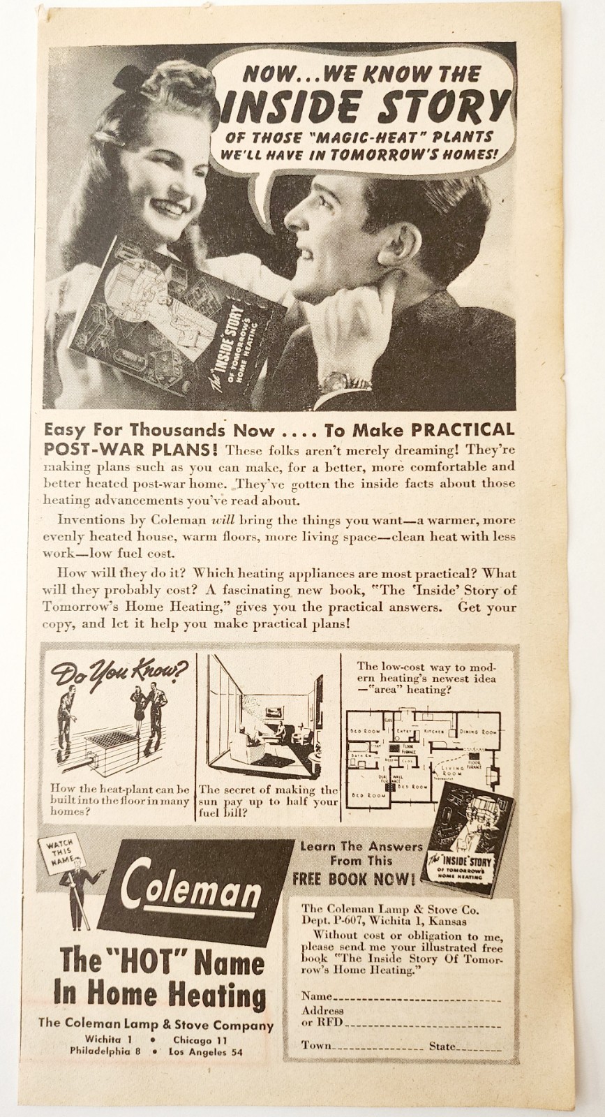 - 1944 Coleman Home Heating Post-War Advertisement WW2 Oil Stoves Heating DWP7A