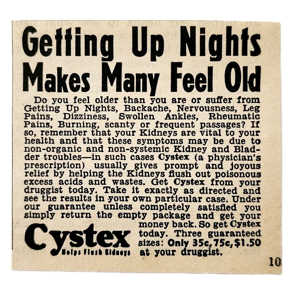 - 1944 Cystex Kidney Toxin Flush Medical Advertisement Quack Medicine F8A