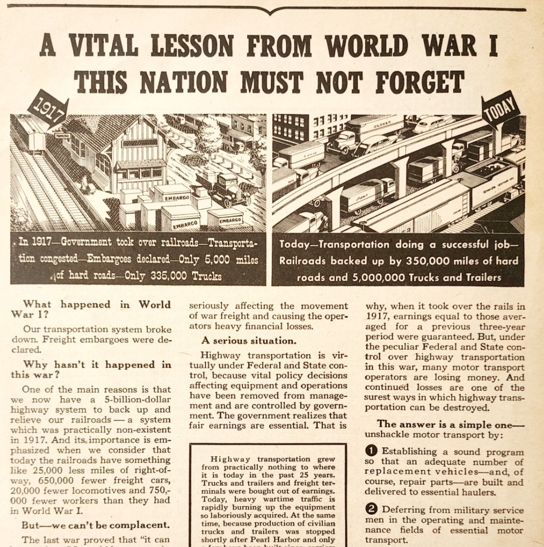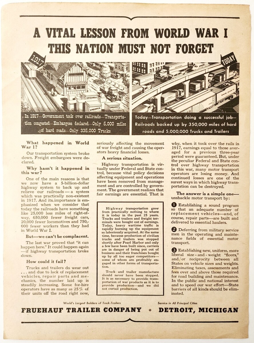 - 1944 Fruehauf Trailer Co Advertisement WW2 Era WW1 Railroad Congestion DWP7A