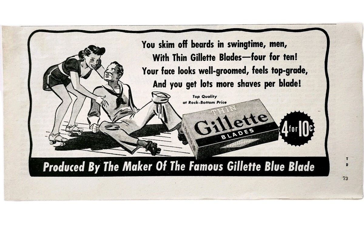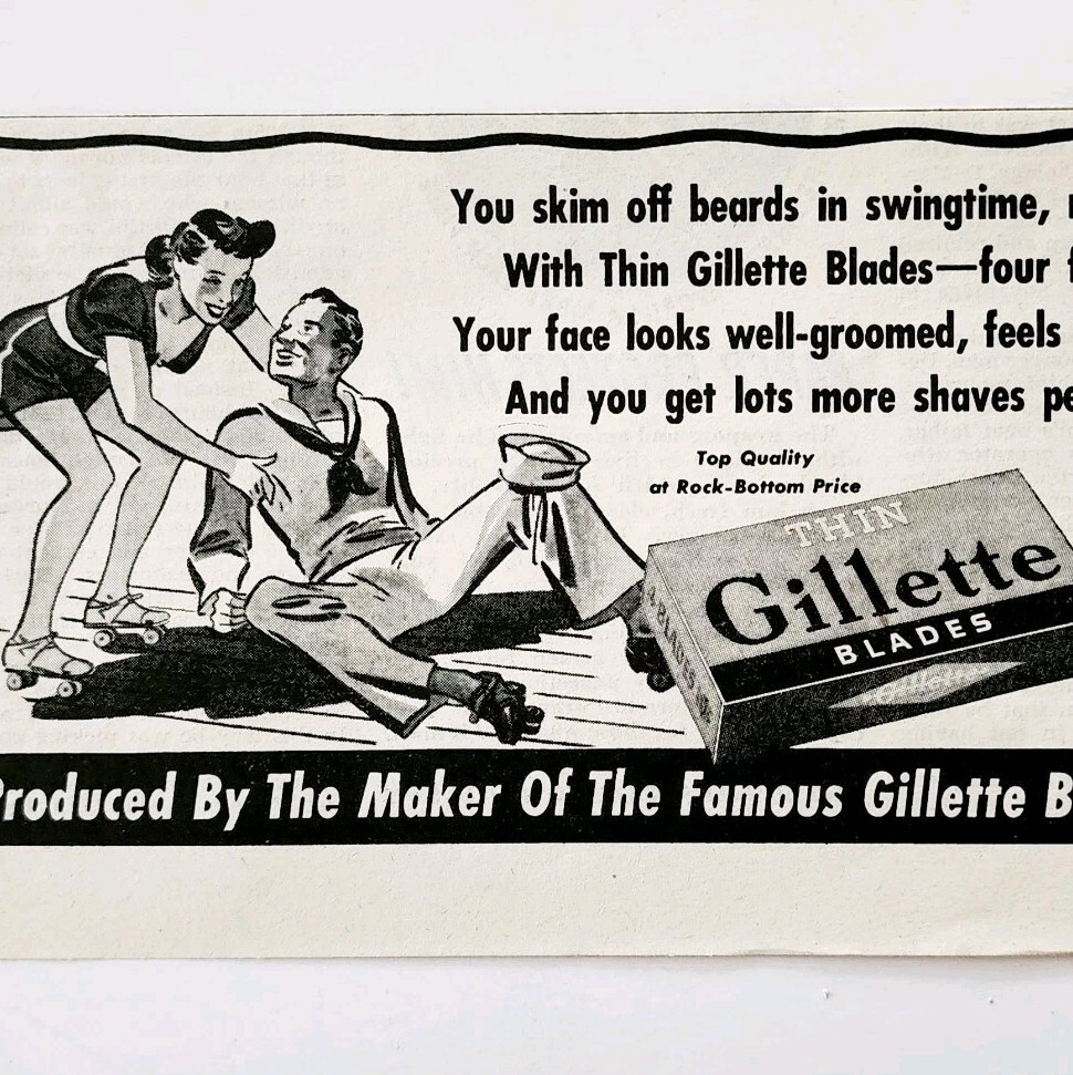- 1944 Gillette Thin Razor Blades Advertisement Rollerskating Navy Man DWA20