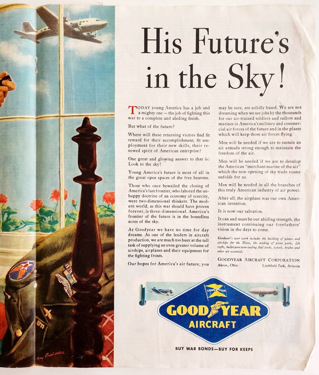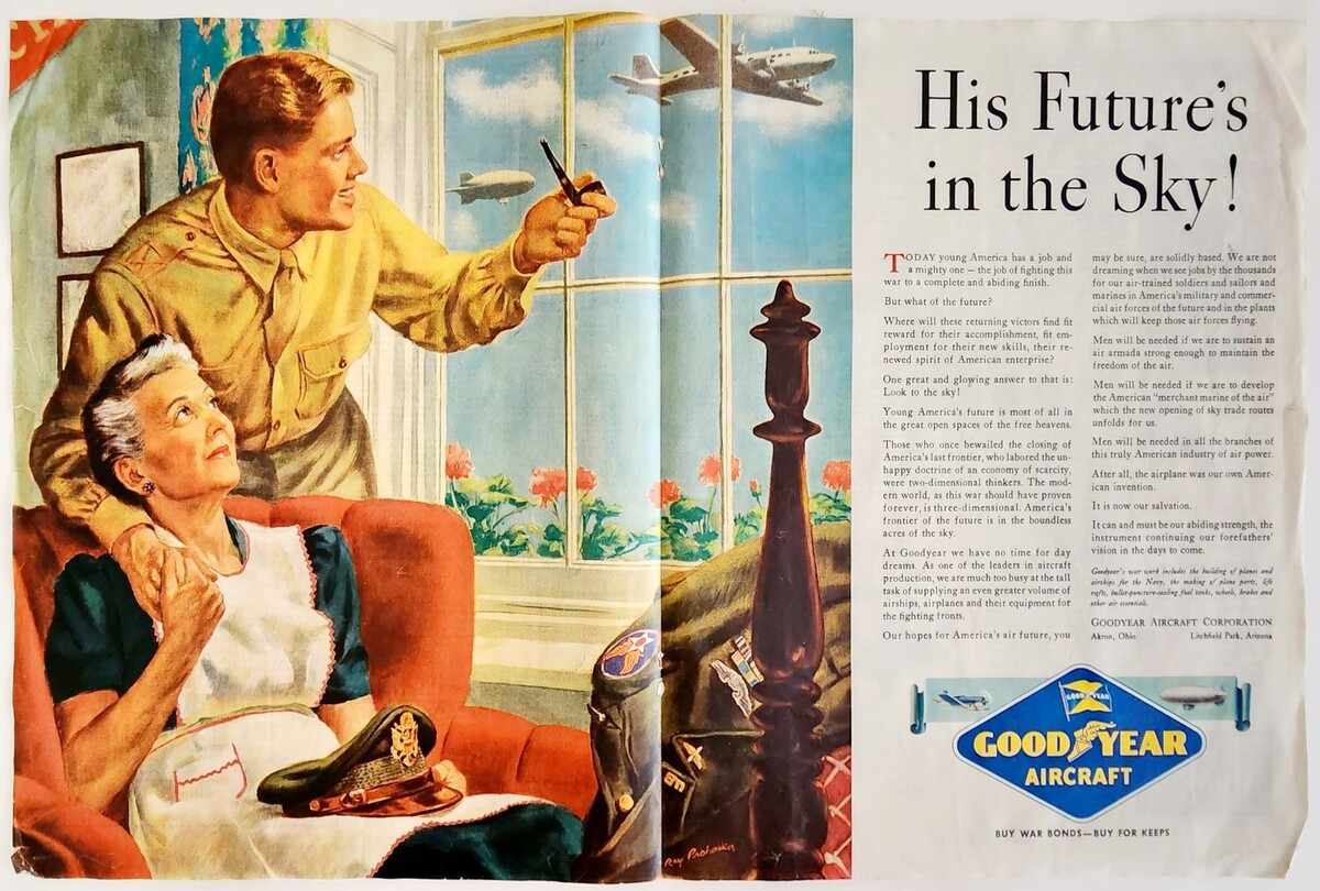 - 1944 Goodyear Blimp Aircraft WW2 Centerfold Advertisement Military DWJJ7