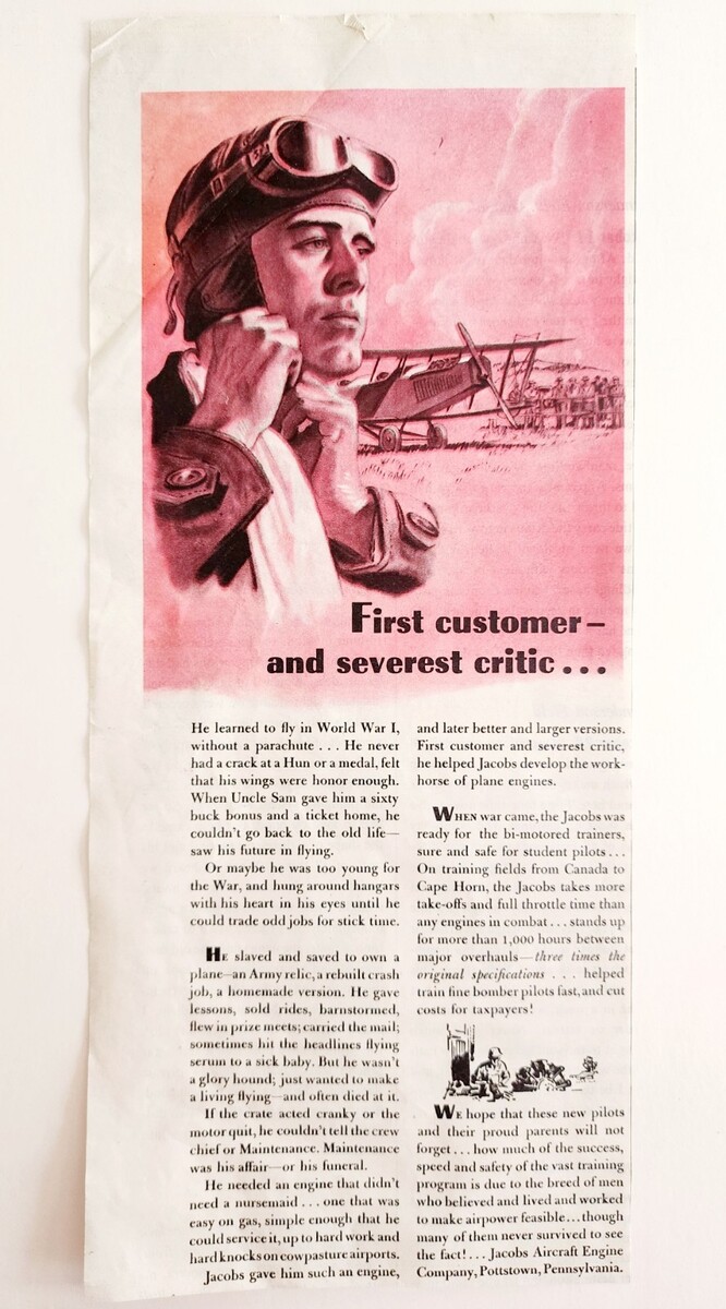 1944 Jacobs Aircraft WW1 WW2 Advertisement Aviation Pottstown Pennsylvania DWJJ7