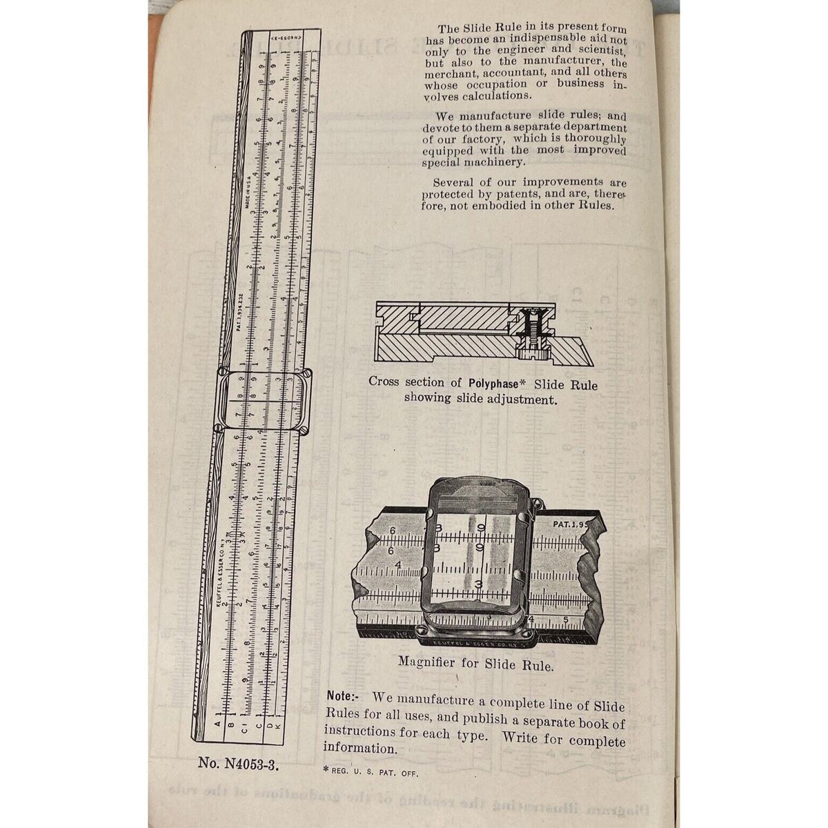1540. 1944 The Polyphase Slide Rule No. N4053 Self-Teaching Manual by Breckenridge. There is discoloration on the covers and on some pages. Doesn?t affect use of the book. Overall in good condition. Always consider offers.