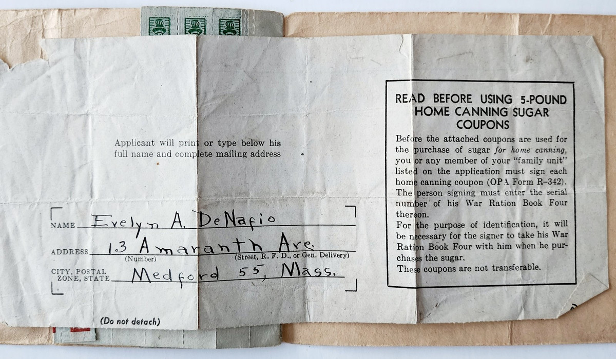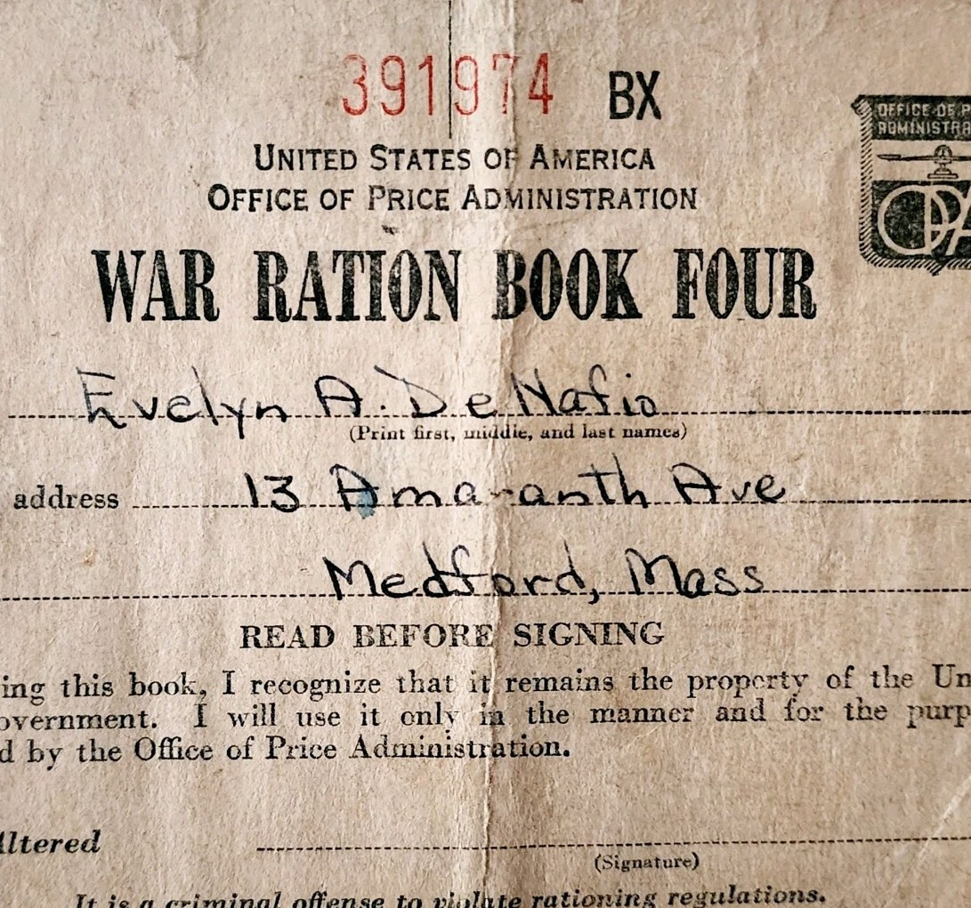 1945 WW2 War Ration Book 4 DeNafio Medford Massachusetts Military DWQQ13