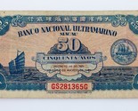 1946 Banco Nacional Ultramarino Macau 50 Avos Note Pick # 38 TRES FIN CONDITION