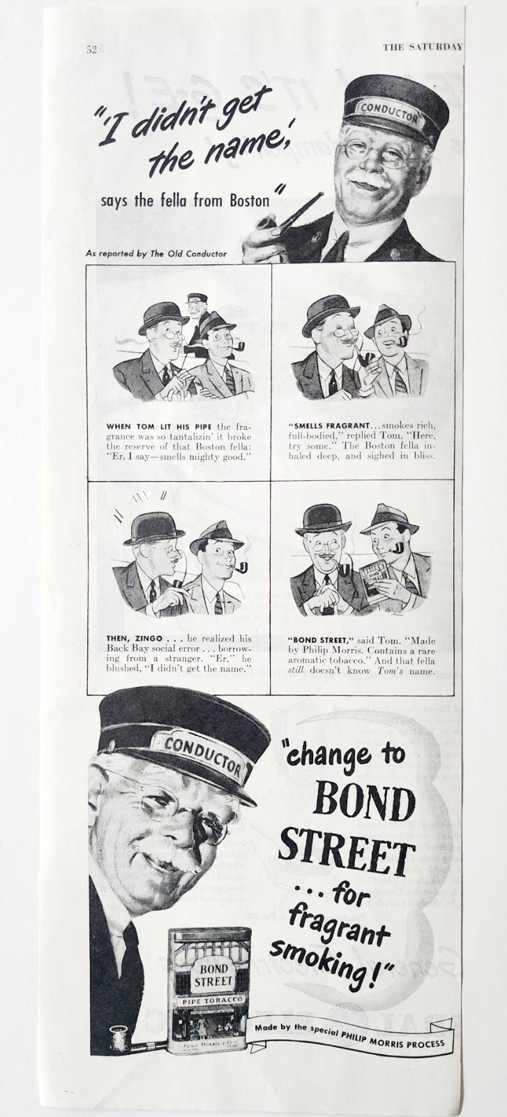 - 1947 Bond Street Pipe Tobacco Advertisement Railroad Train Conductor DWJJ23