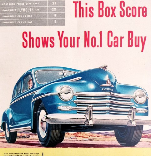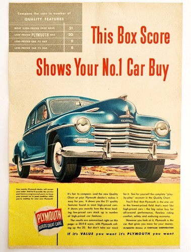 - 1947 Chrysler Plymouth Automobile Advertisement Box Score Quality Chart DWNN16