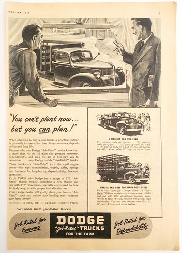 - 1947 Dodge Job Rated Trucks For Farming Advertisement Automobilia Farms DWNN21