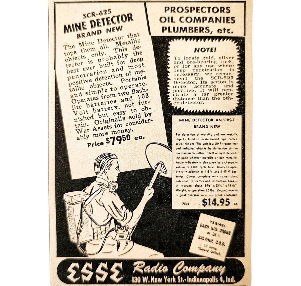 - 1947 Esse Radio Company Mine Detector Advertisement Vintage Military E8H