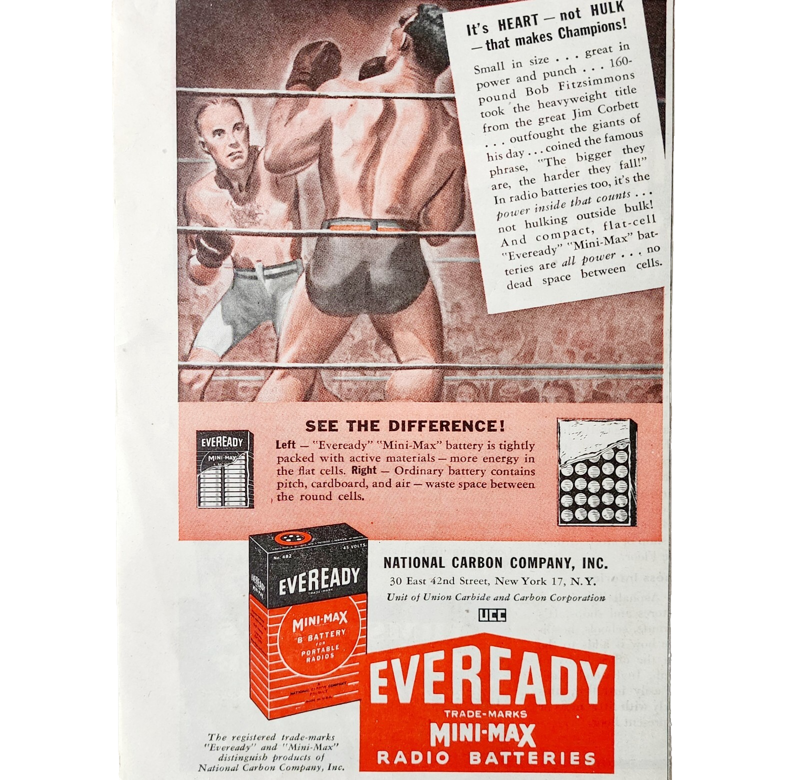 - 1947 Eveready Radio Battery Advertisement Fitzsimmons Jim Corbett Boxing DWJJ23