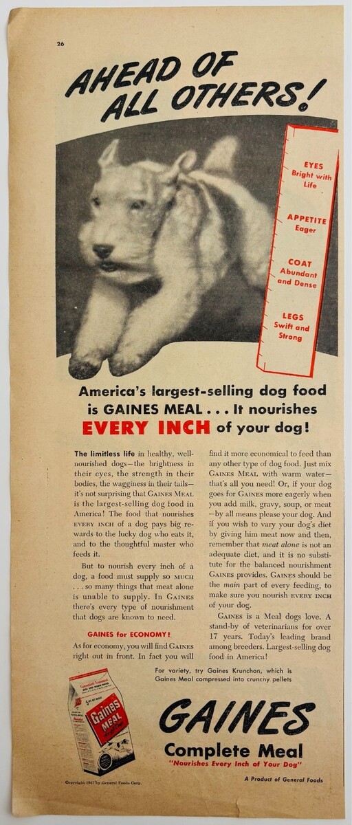 - 1947 Gaines Meal Dog Food Advertisement Wire-Haired Fox Terrier Vintage DWXX9