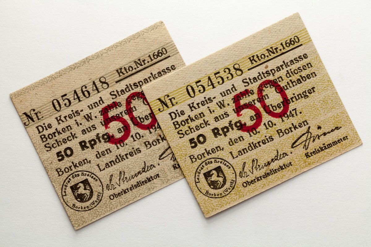 - 1947 Germania 50 PFENNIG Notgeld Note. Emissione Post-WWII. Borken, Lotto Di 2.