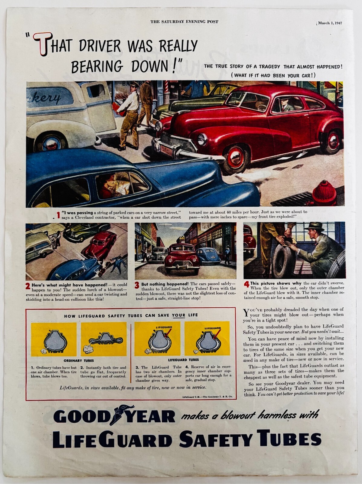 - 1947 Goodyear Tires Advertisement Automobilia Vintage Safety Tubes DWWW7