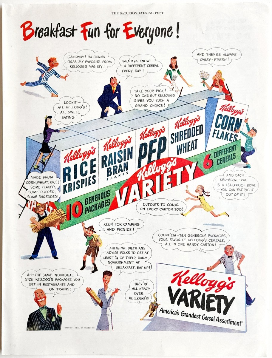 - 1947 Kellogg's Cereal Advertisement Breakfast Variety 10 Pack Pep Vintage DWJJ23