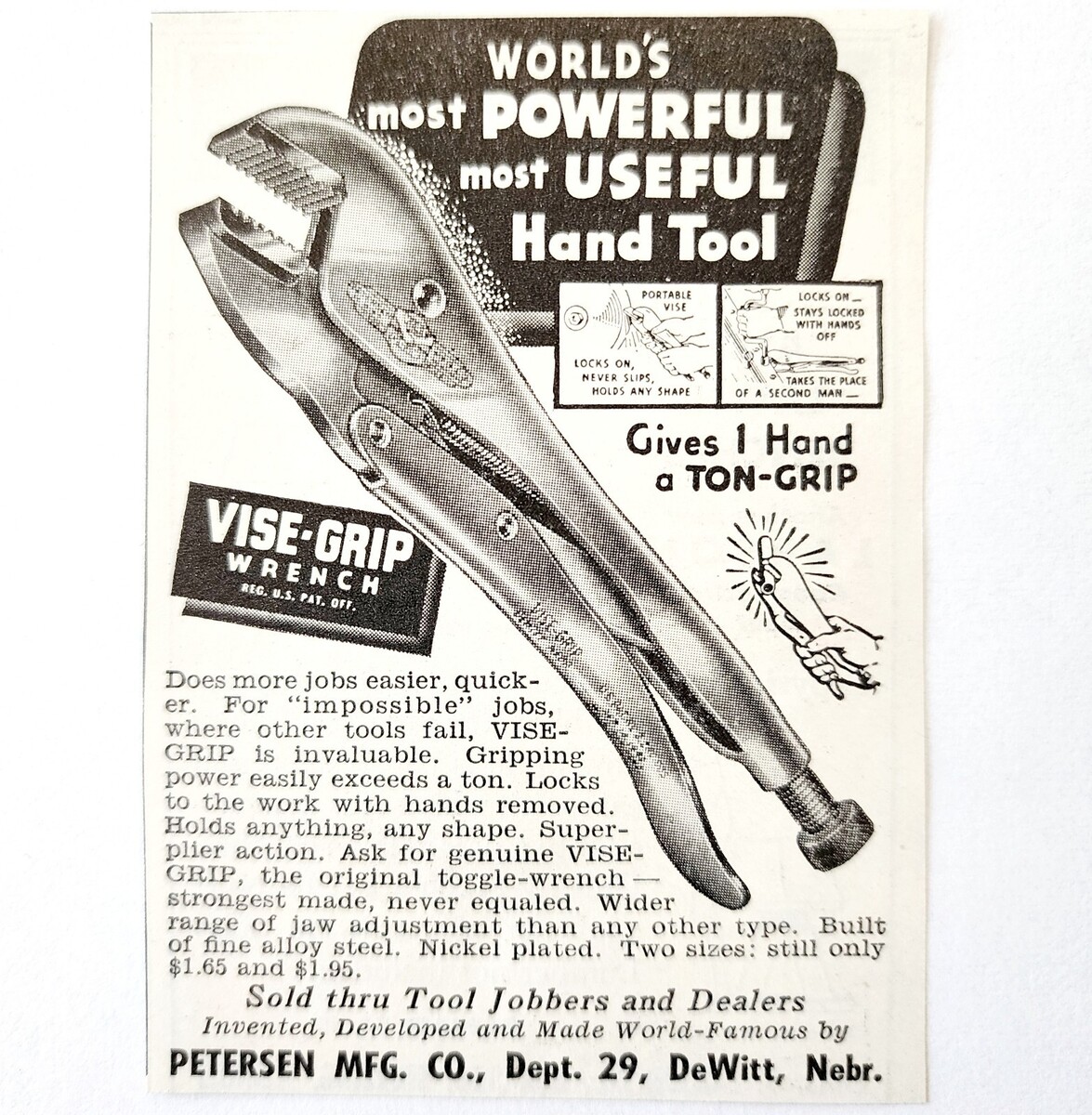 - 1947 Petersen Vise Grip Wrench Tool Advertisement Vintage Hand Tools E8H
