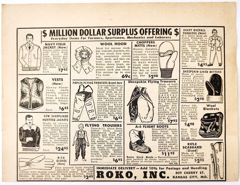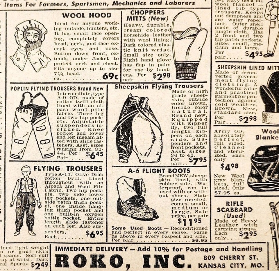 - 1947 Roko Military Outdoor Clothes Supply Advertisement Vintage Clothing E8K