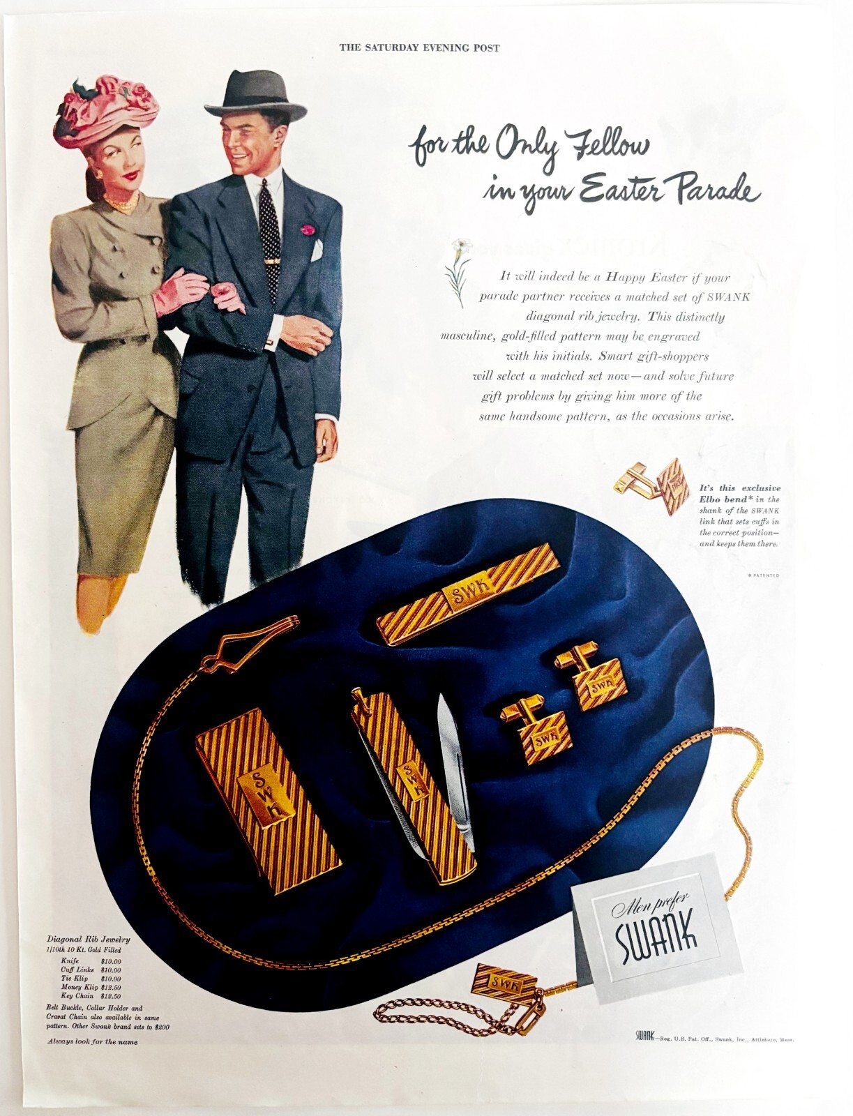 1947 Swank Diagonal Rib Jewelry Advertisement 10 Karat Gold Set Easter DWJJ21