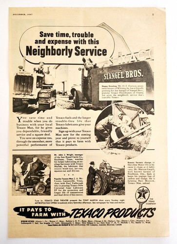 - 1947 Texaco Gas Oil Neighborly Service Advertisement Farming Agriculture DWNN19