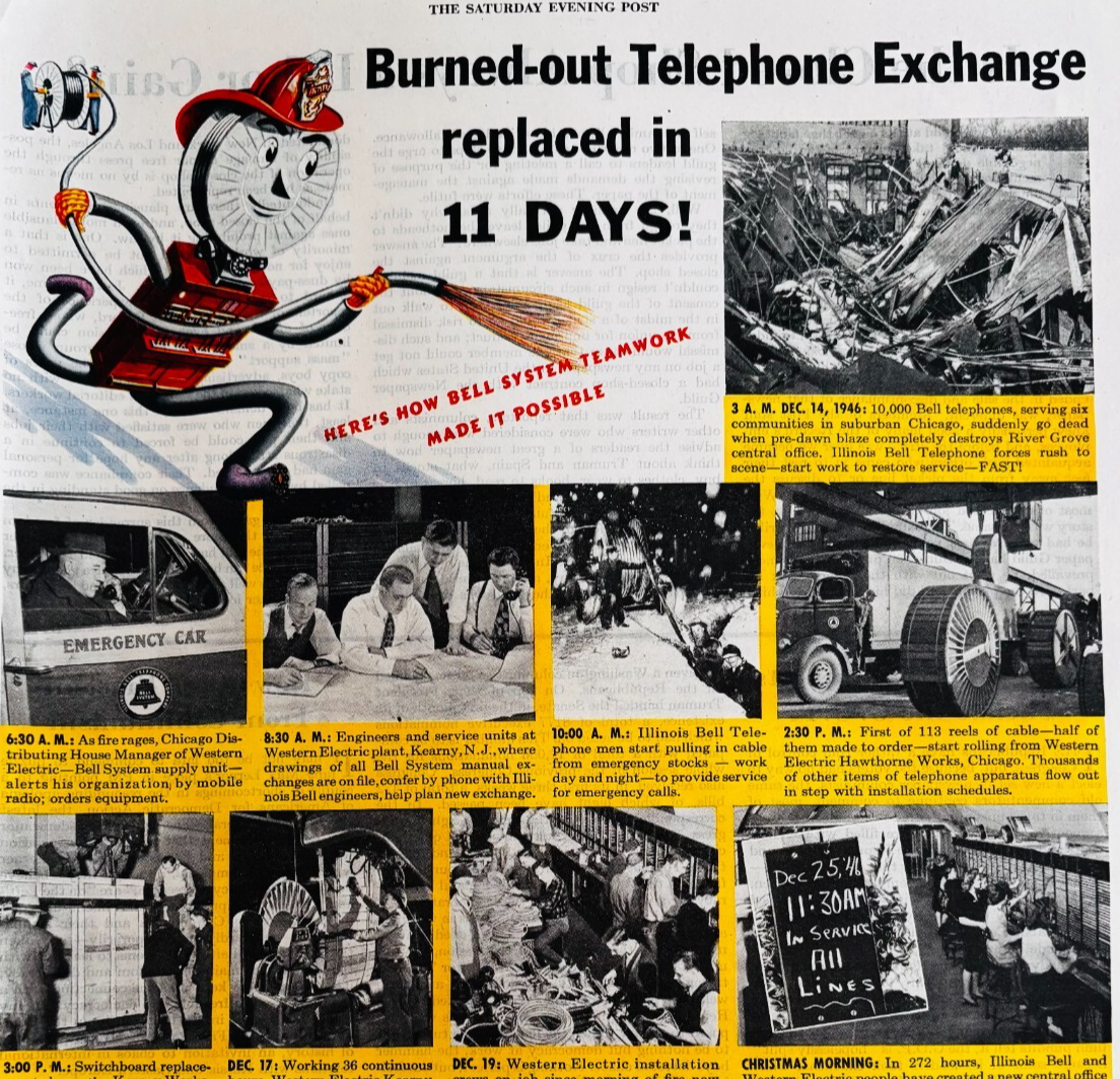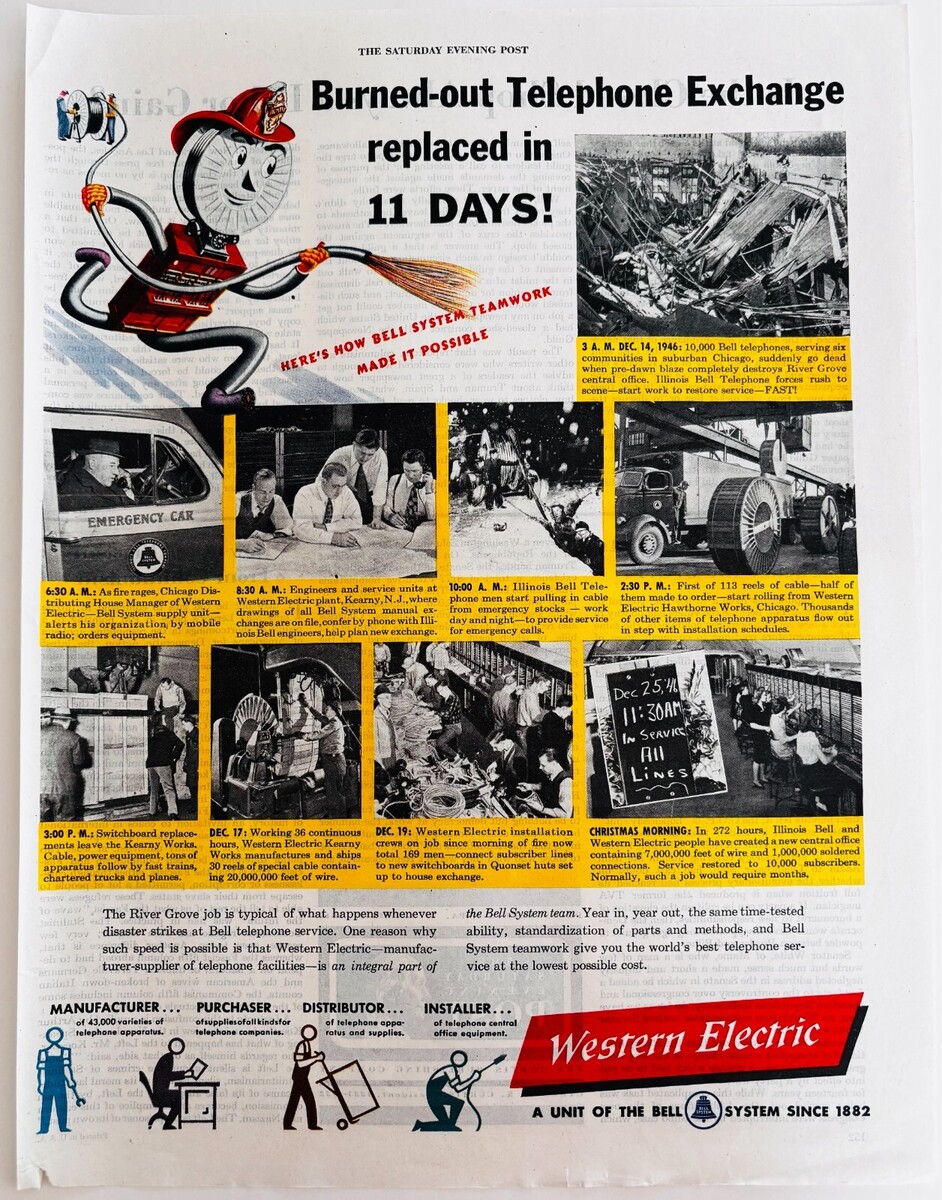 - 1947 Western Electric Bell System Advertisement Chicago River Grove Fire DWWW3