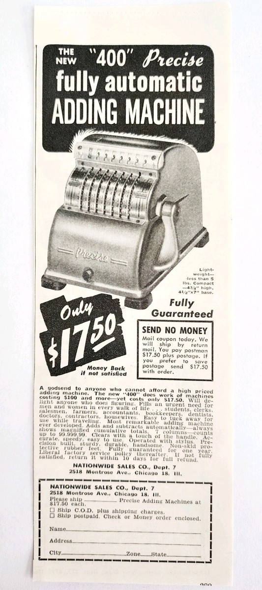 1948 Automatic Adding Machine Series 400 Advertisement Nationwide Sales E2J3