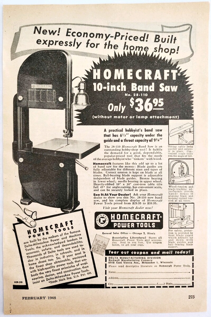 - 1948 Delta Homecraft 10" Band Saw Advertisement Woodworking Vintage E2H4