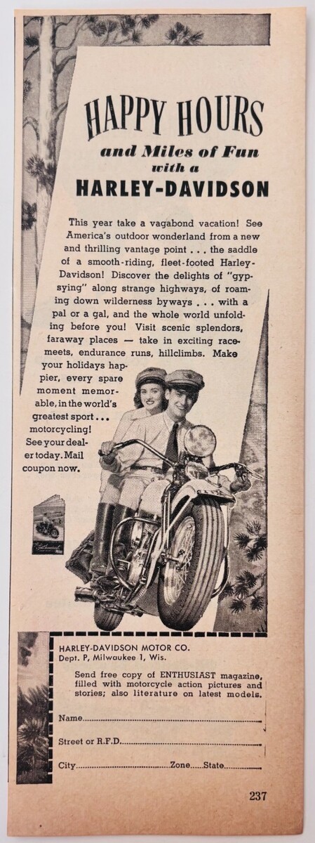 - 1948 Harley Davidson Motorcycle Advertisement Transportation Happy Hours F17L