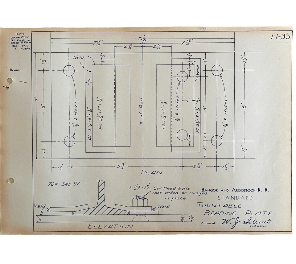 - 1948 Railroad Bangor Aroostook Turntable Bearing Plate Blueprint H33 DWDD13