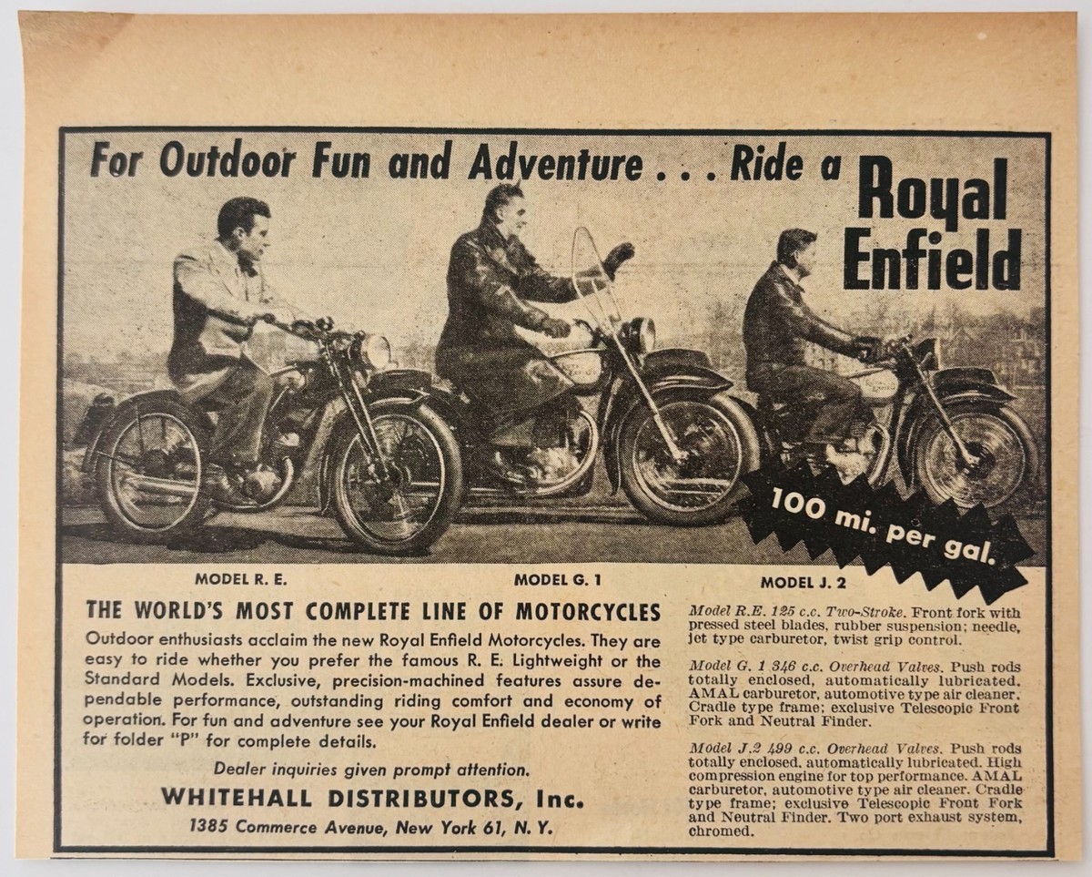 - 1948 Royal Enfield Motorcycle Advertisement Vtg Transportation Whitehall F17L
