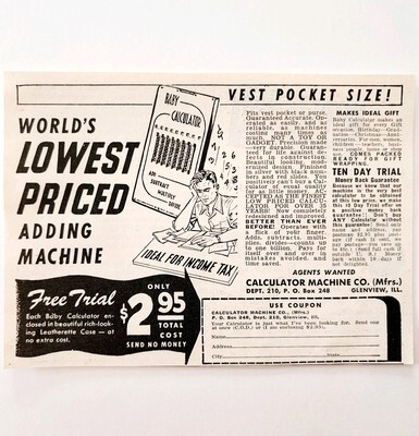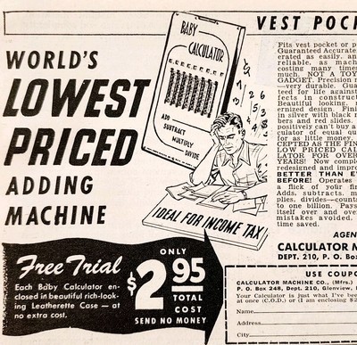 - 1949 Baby Pocket Calculator Analog Advertisement Adding Machine Illinois E8R