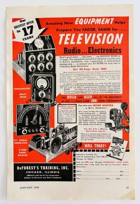 - 1949 DeForest DeVry Radio Television Jobs Advertisement Vintage Electronics E8L
