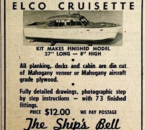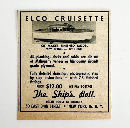 - 1949 Elco Cruisette Model Ship Boat Advertisement The Ships Bell