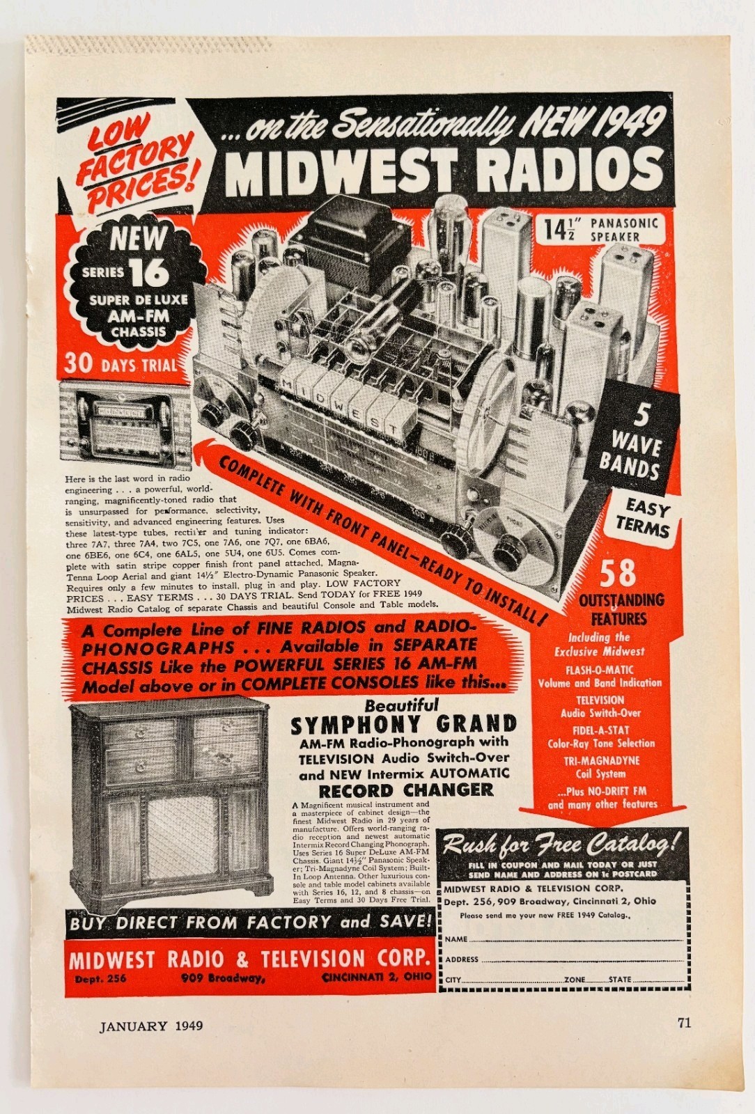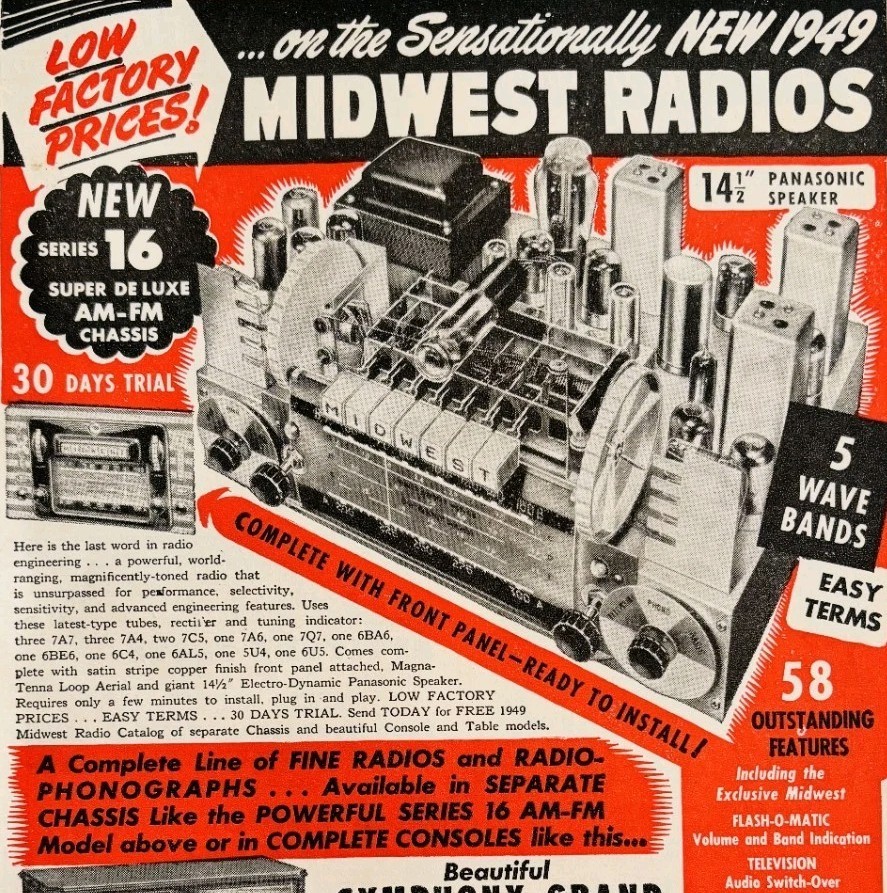- 1949 Midwest Radios Series 16 AM FM Advertisement Vintage Electronics E8L