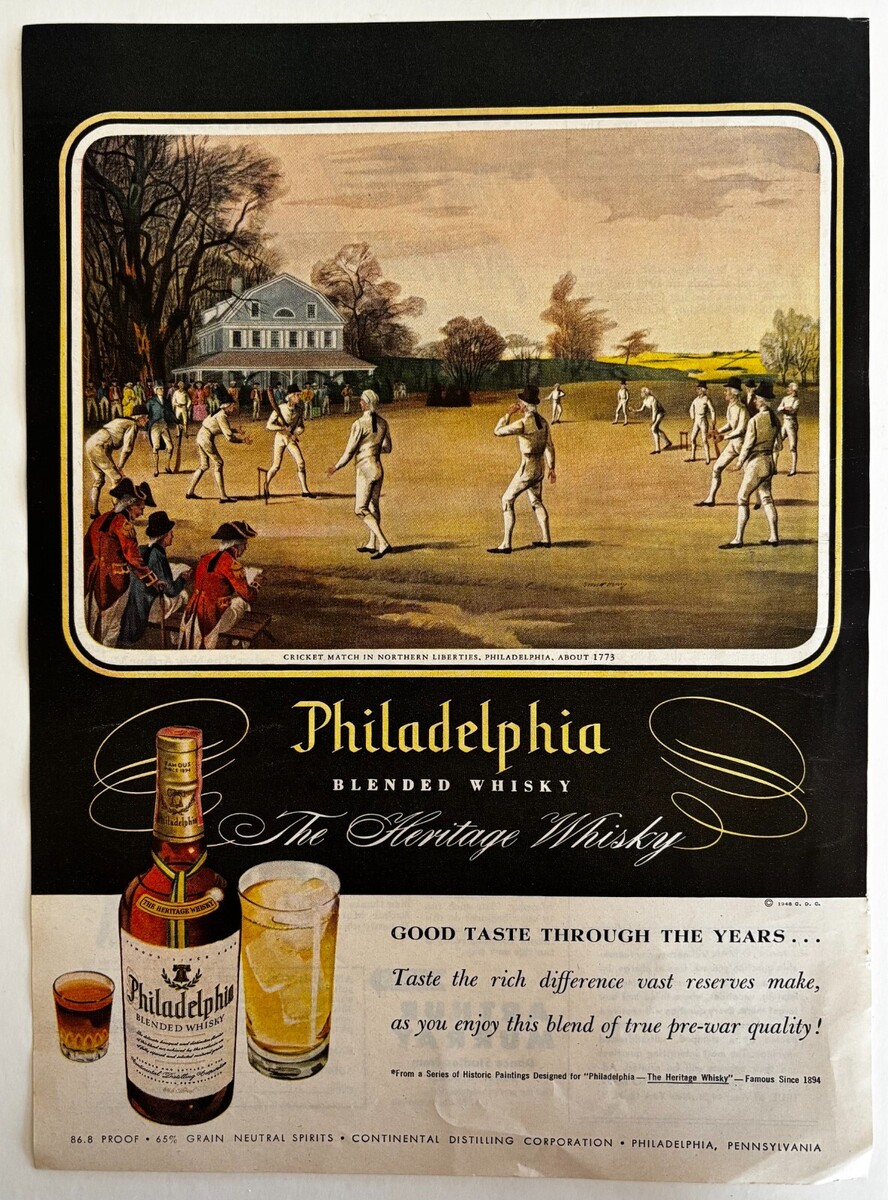 1949 Philadelphia Whiskey Advertisement Cricket Match Vintage Liquor DWTT3